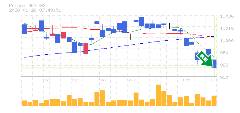 終 値:961円