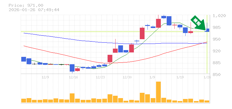 終 値:971円