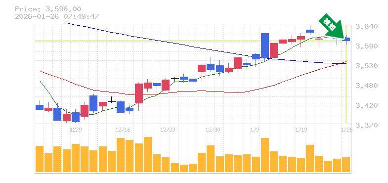 終 値:3596円