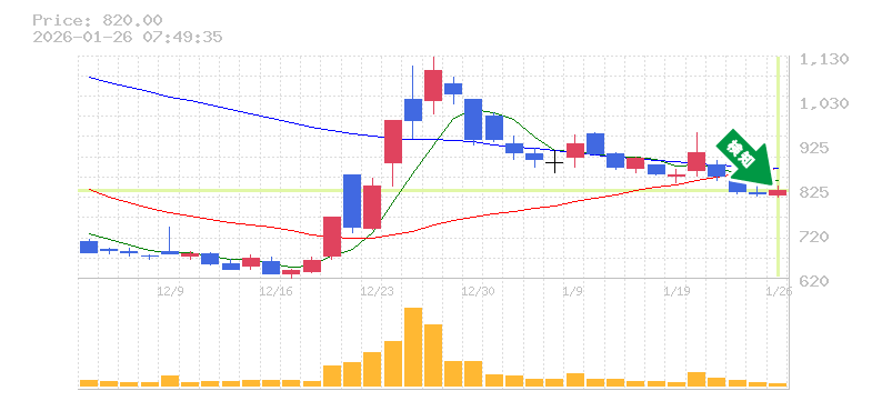 終 値:820円
