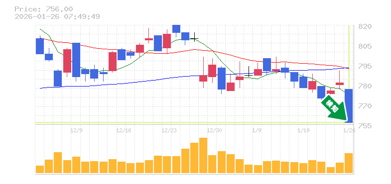 終 値:756円