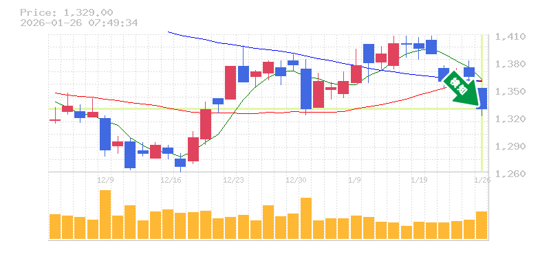 終 値:1329円