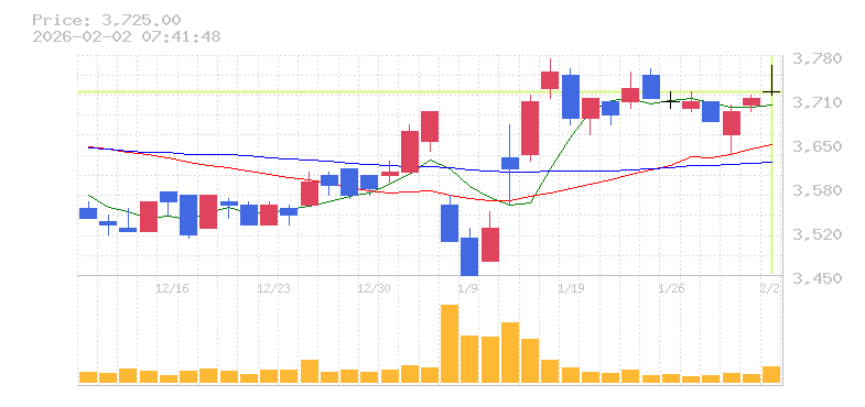 終値:3725円
