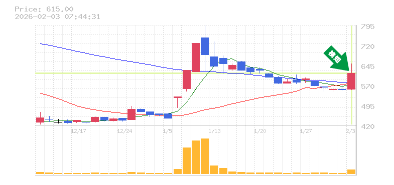 終 値:615円