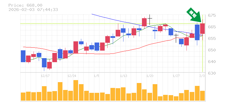 終 値:668円