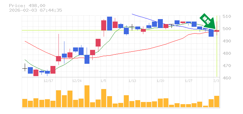 終 値:498円