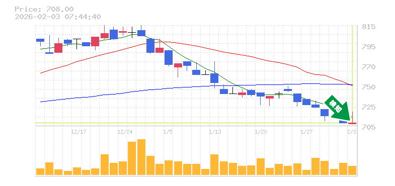 終 値:708円