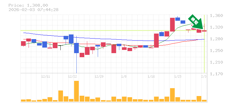 終 値:1308円