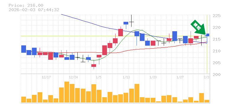 終 値:216円