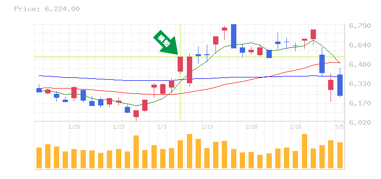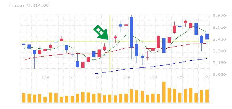 終 値:6398円