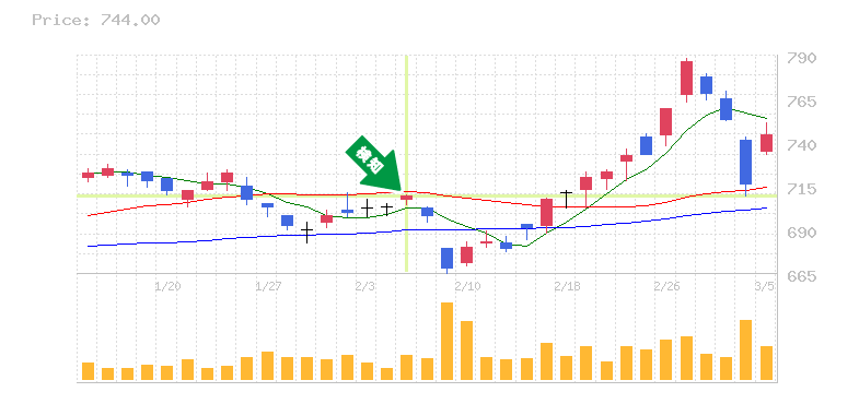 終 値:709円