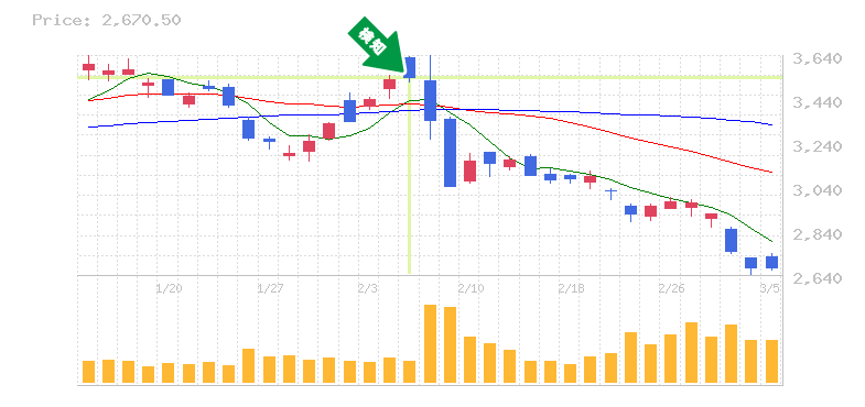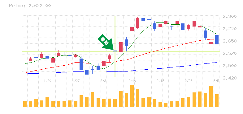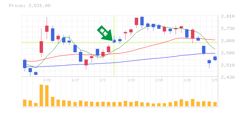 終 値:2854.5円
