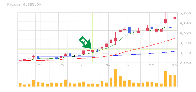 上離れ? 4連騰以上継続しながら75日線突破している銘柄