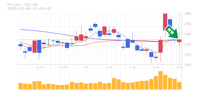 終 値:731円