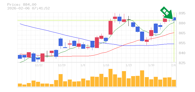終 値:884円