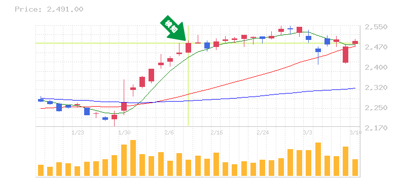 上離れ? 4連騰以上継続しながら75日線突破している銘柄