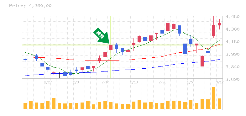 上離れ? 4連騰以上継続しながら75日線突破している銘柄