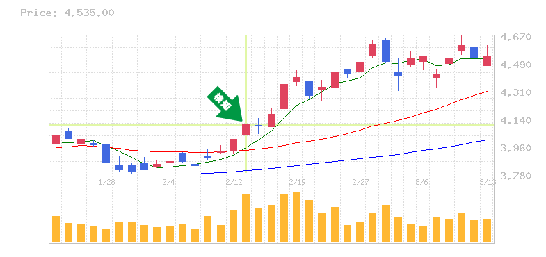 上離れ? 4連騰以上継続しながら75日線突破している銘柄