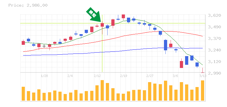 終 値:2997.5円