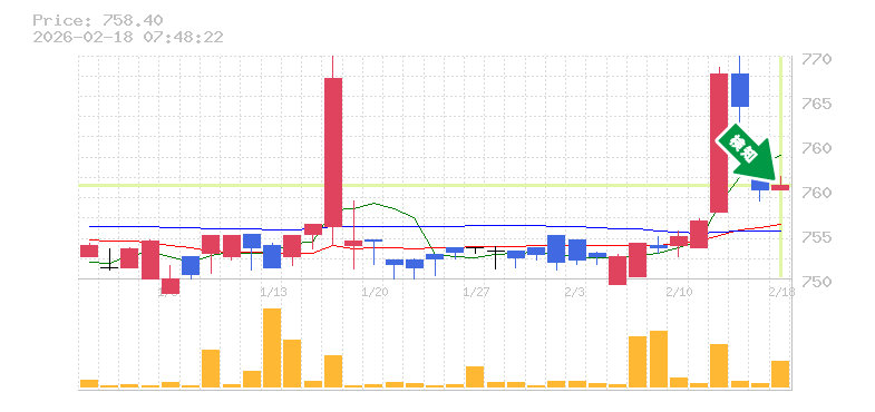 終 値:758.4円