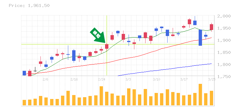 上離れ? 4連騰以上継続しながら75日線突破している銘柄