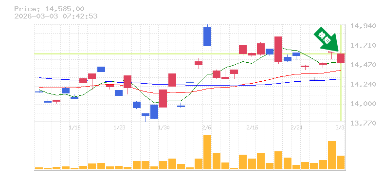 終 値:14585円