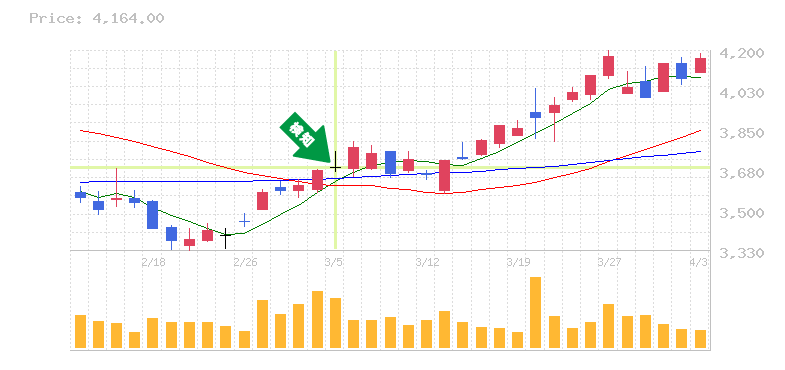 2026-03-05(木)連騰継続中銘柄 -連騰メモ 連騰中 X Facebook はてブ LINE コピー 初動ちゃんの最新記事2026-04-24(金)初動検知銘柄|明日上がりそうな株2026-04-24(金) 連騰中の株銘柄一覧2026-04-24(金) トレンド転換銘柄|株の初動検知2026-04-24(金) 高配当株 良チャート銘柄|株の初動検知2026-04-24(金)パーフェクトオーダー銘柄一覧|株価・チャート分析2026-04-23(木)初動検知銘柄|明日上がりそうな株2026-04-23(木) 連騰中の株銘柄一覧NEW! 初動ちゃんの動意株速報はこちらNEW! 初動ちゃんの株価AI診断はこちら 今、資金が流入している銘柄はこちら 🔥出来高急増ランキング ★スコアランキング 📈好調継続ランキング 📊テーマランキング 🚀連騰ランキング 🏆今週上昇ランキング ※東証営業日の夕方に更新してます。ブックマークしておくと便利です。 ※スクリーニング結果のメモであり、投資を推奨するものではありません。※投資は自己責任で\(^o^)/ 上離れ? 4連騰以上継続しながら75日線突破している銘柄 【4676】フジ・メディア・ホールディングス 【4676】フジ・メディア・ホールディングス 終 値:3687円 [Y!][株探][理論株価Web][IR BANK]
