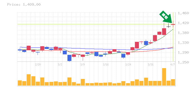 終 値:1409円