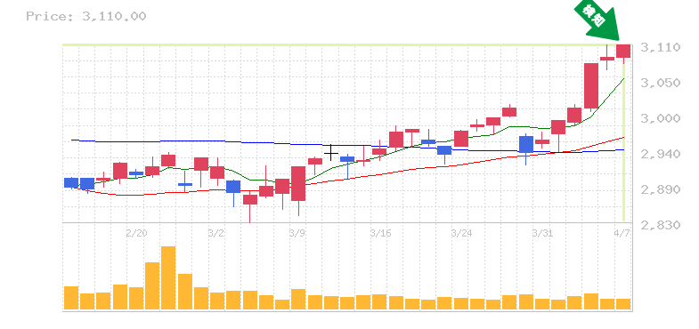 終 値:3110円