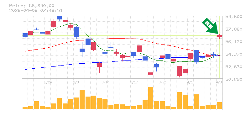 終 値:56890円