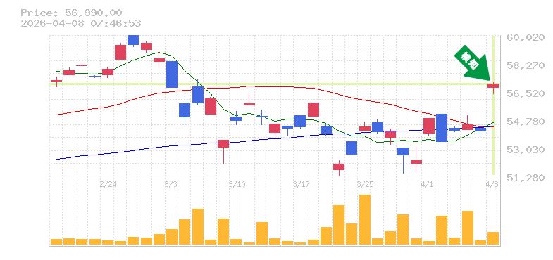 終 値:56990円