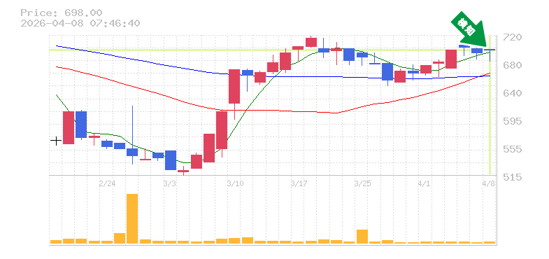 終 値:698円