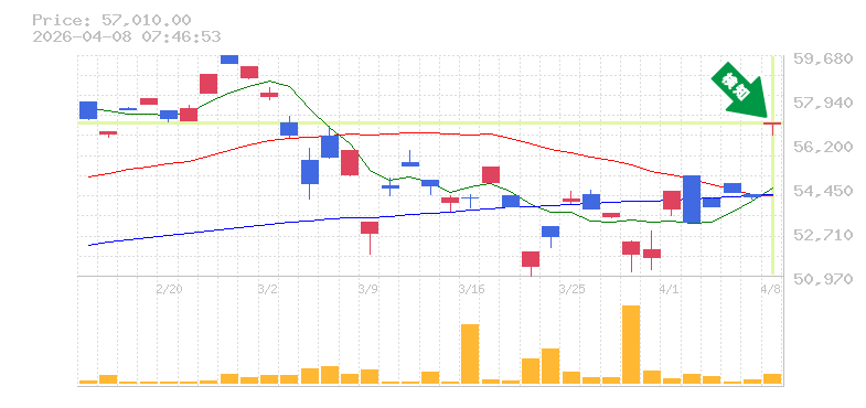 終 値:57010円