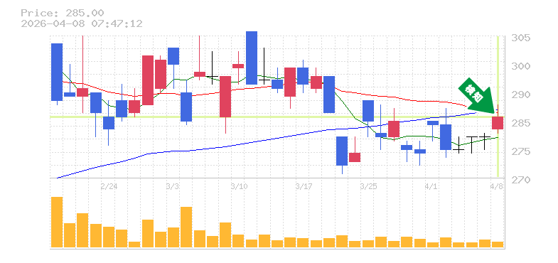終 値:285円