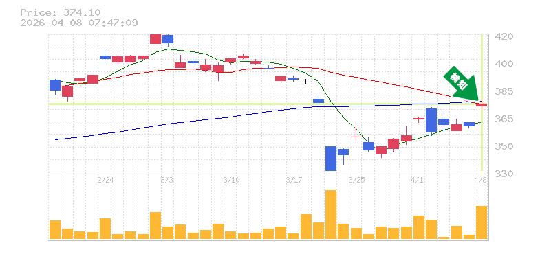終 値:374.1円
