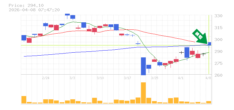 終 値:294.1円