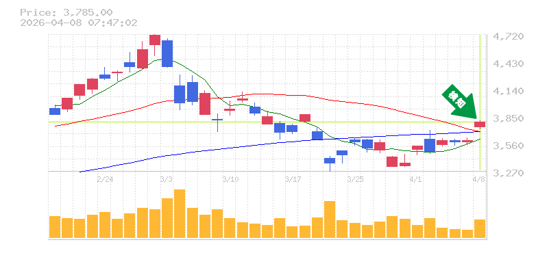 終 値:3785円