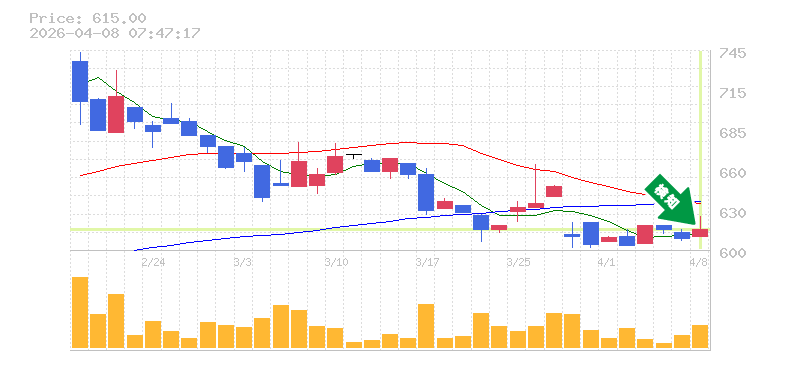 終 値:615円