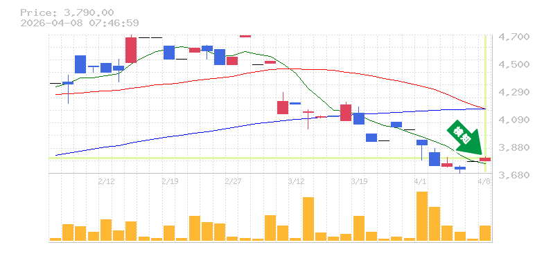終 値:3790円