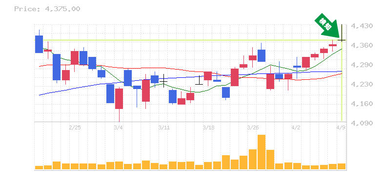 上離れ? 4連騰以上継続しながら75日線突破している銘柄