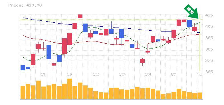 終値:410円