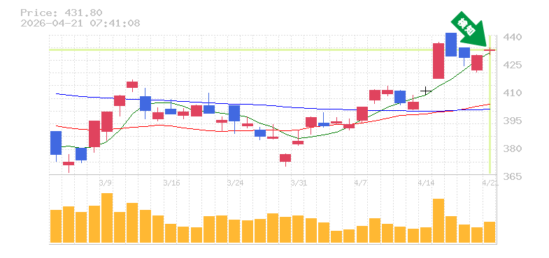 終 値:431.8円