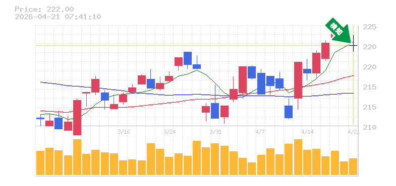 終 値:222円