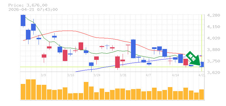 終 値:3676円