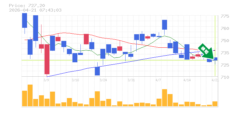 終 値:727.2円