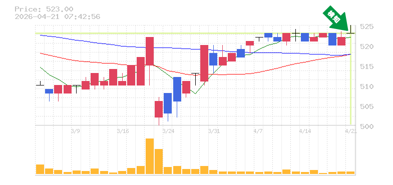 終 値:523円