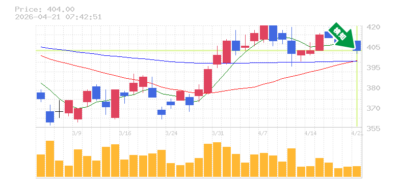 終 値:404円