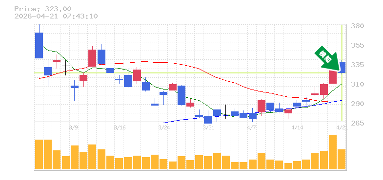 終 値:323円