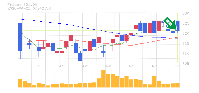 終 値:821円