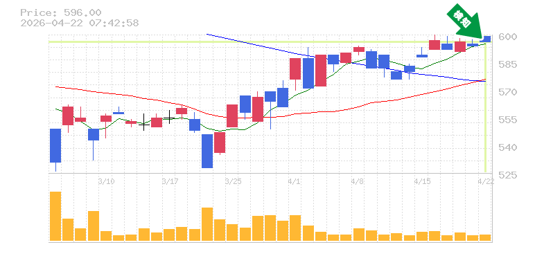 終 値:596円